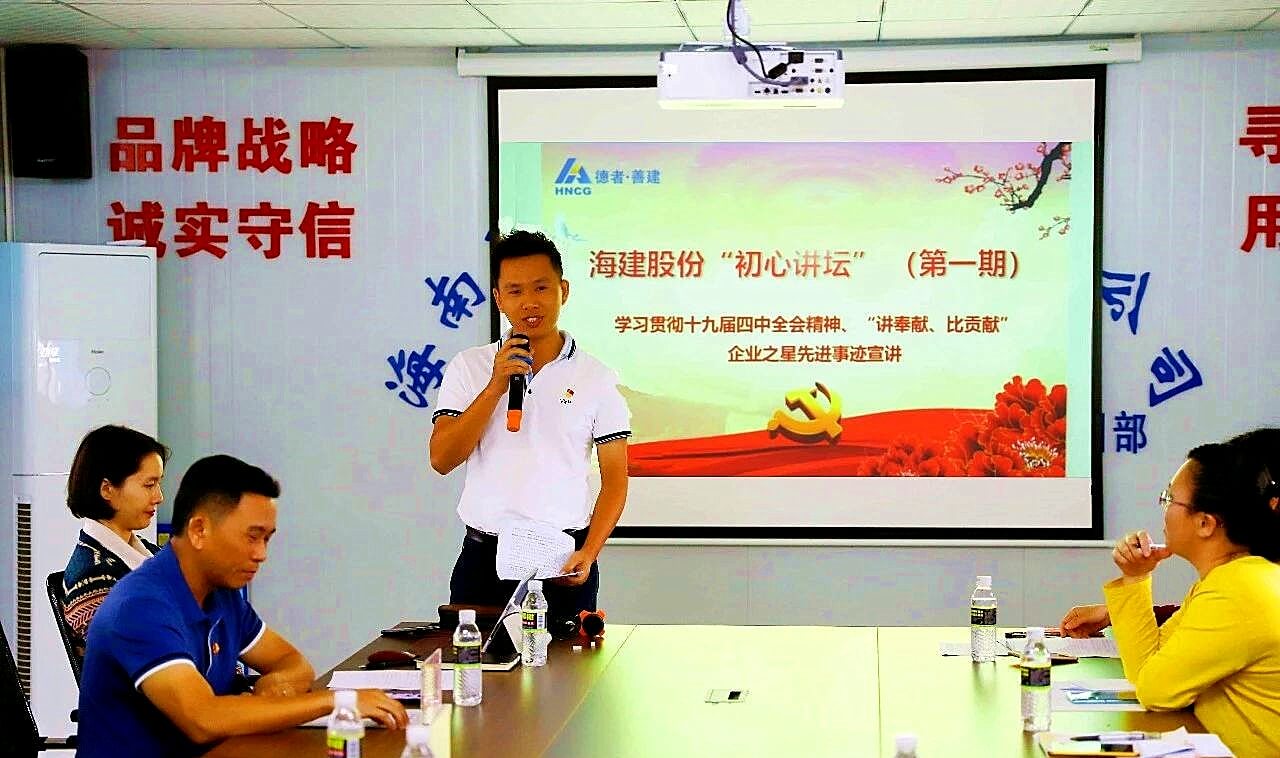 黨委書記凌海深入一線工地“上海六院海口骨科和糖尿病醫(yī)院二期項目”講授黨的十九屆四中全會精神專題黨課。